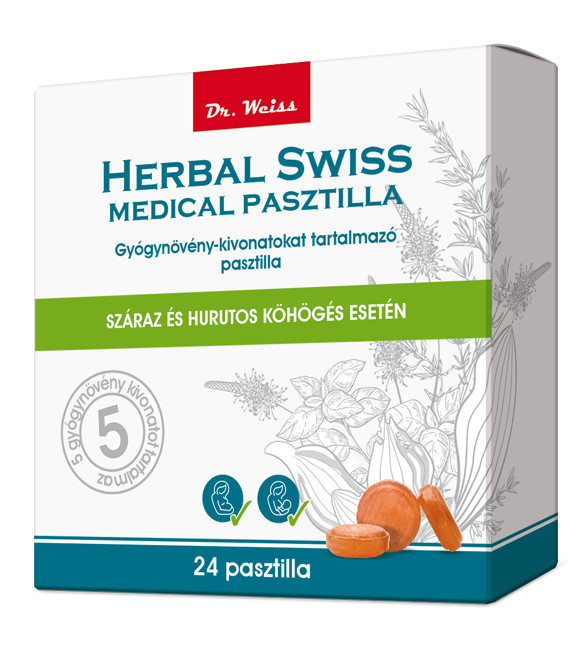 A Herbal Swiss Medical Pasztilla 5 gyógynövény egyedülálló kombinációját tartalmazza (Lándzsás útifű, Indiai tömjén, Kakukkfű, Bazsalikom, Eukaliptusz), amelyek segítenek enyhíteni a megfázással kapcsolatos tüneteket: