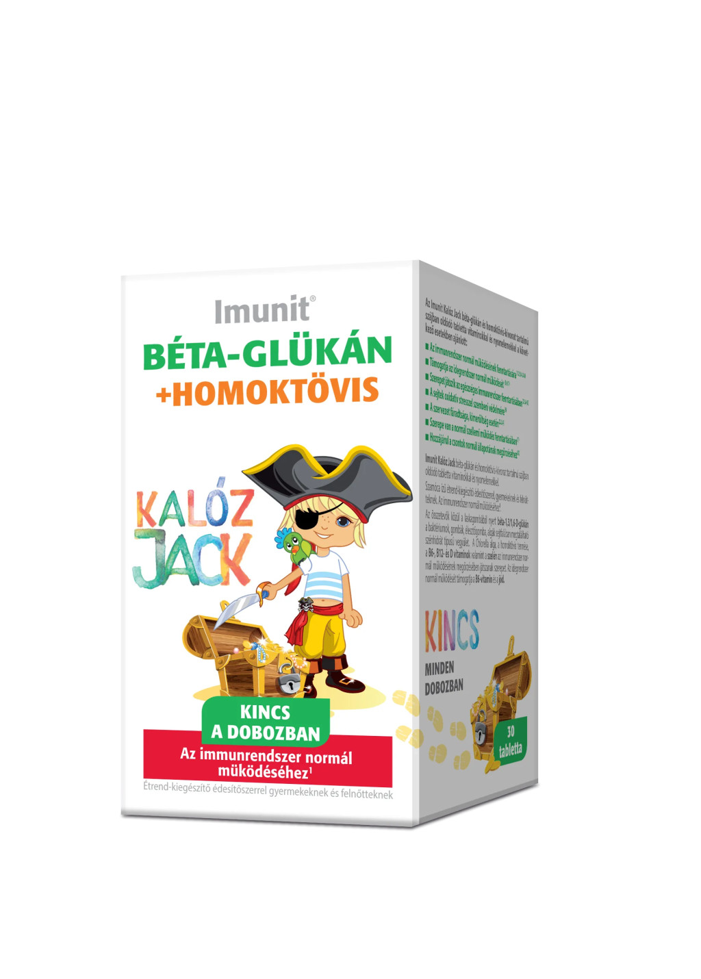 Imunit Kalóz Jack béta-glükán és homoktövis-kivonat tartalmú szájban oldódó tabletta vitaminokkal és nyomelemekkel. Szamóca ízű étrend-kiegészítő édesítőszerrel, gyermekeknek és felnőtteknek. Az immunrendszer normál működéséhez.