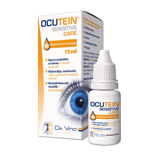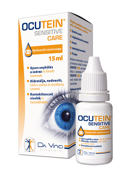 OCUTEIN® SENSITIVE CARE nedvesítő szemcsepp egy orvostechnikai eszköz, amely megkönnyebbülést biztosít az érzékeny szem számára. Az egyedülálló összetétel enyhíti a szemszárazság érzését, enyhíti a szél, a por, a légkondicionáló, és a számítógép előtt végzett munka által okozott irritációt. Segíti az egész napos kontaktlencse viselést. Nem tartalmaz klórhexidint, tiomerzált, benzalkónium-kloridot, fenoxietanolt vagy állati eredetű összetevőket.